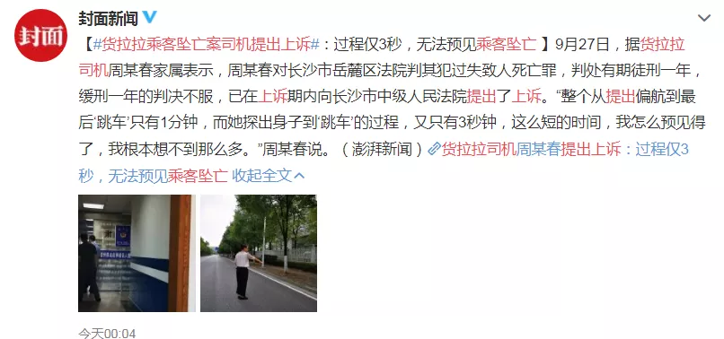 因此周某春上訴後,不會引起自己刑期的增加,甚至可能爭取到無罪。我們期待二審法院能夠有效回應輿論關切,給司機、給民眾一個公道的判決。