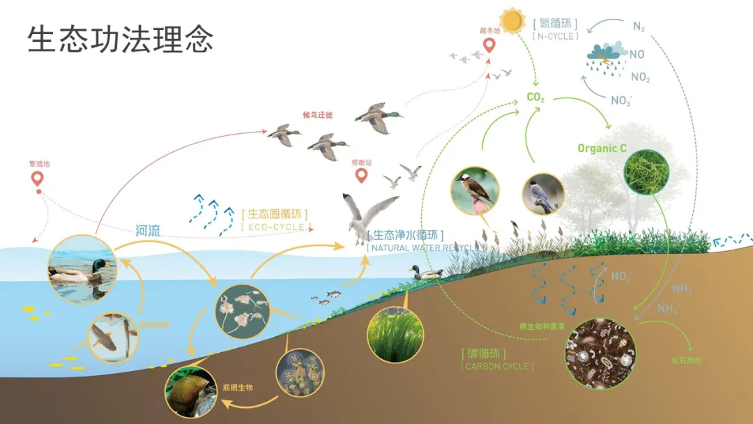自然是最好的環境營造師。河流生態系統是由陸地、水流和生物組成的動態平衡系統,河流生態系統具有生產氧氣、食物、固碳、降解污染等生態生產力。生態功法讓自然做功,減少不必要的人工干預,是實現生態文明的最佳路徑。