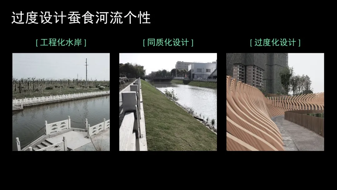 經過三年的建設,建成後的浦溪河展現出山水相望的大美風韻。大家看到左上這個圖片,我們其實並沒有做特別多的設計,而是減去了雜質,設計並不只是做加法,減法一樣可以做出很好的景象。