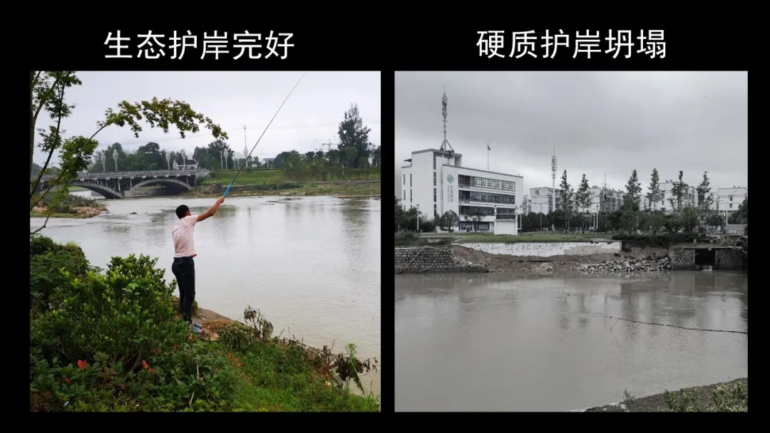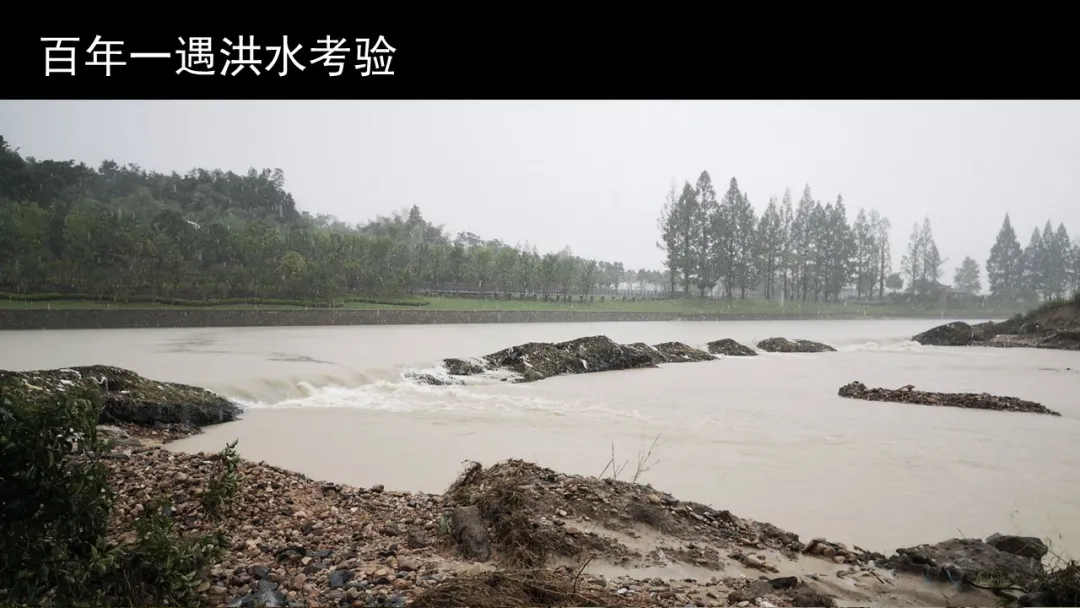 剛剛建成的浦溪河命運如何?當地政府和我們都高度緊張,我們第一時間趕赴現場,發現經過微創設計的河岸、景觀橋和村莊平安無恙,經受了大自然的洗禮和考驗。幾處破損之處,恰恰是未來得及改善的傳統的工程護岸,也為未來進行微創設計留下了契機。