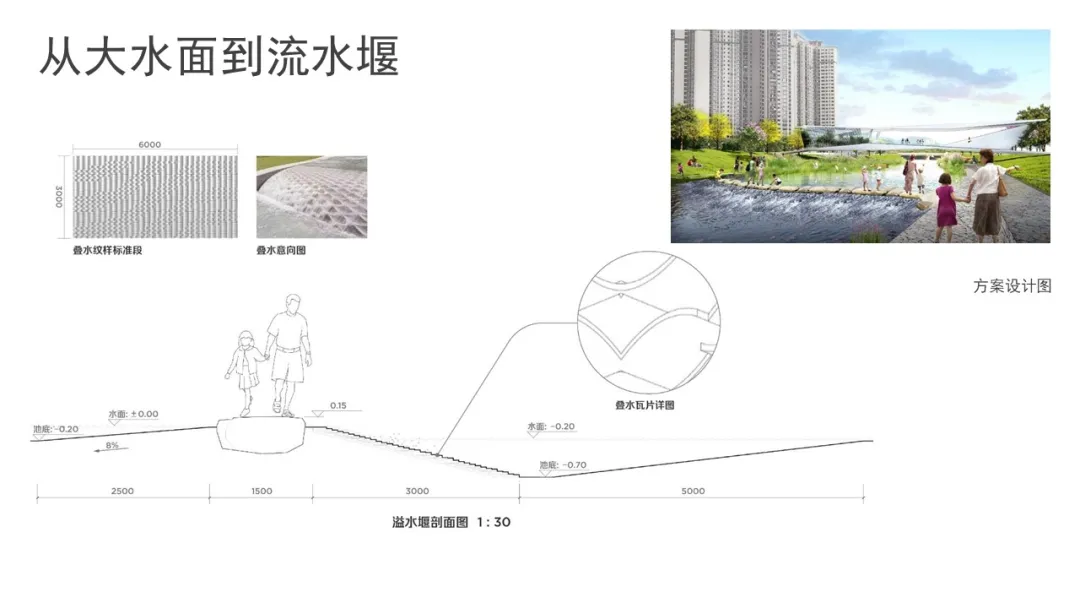為此,我們在河邊創造引人入勝的風景錨點,吸引親朋好友到濱水環境中體驗,“空山清雨後,天氣晚來秋”的畫境,以及“關關雎鳩,在河之洲”的國風…..在潛移默化之中,將敬水、珍水、親水、樂水的人文基因注入到人們的心中。讓人和自然和諧的畫面在母親河邊率先實現。