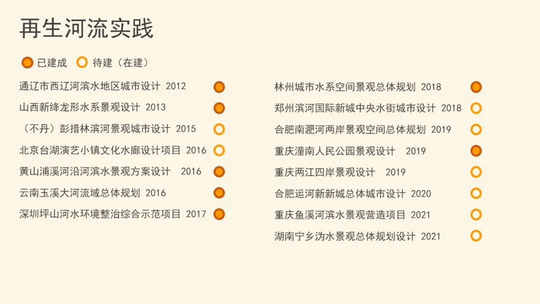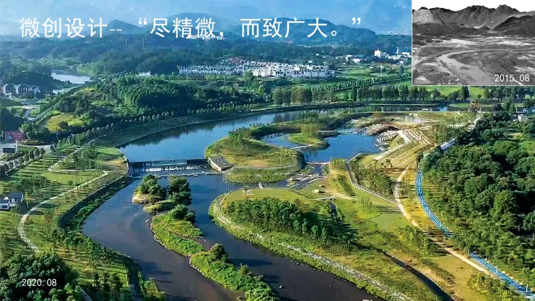 幾年來,我們在國內外以微創設計為理念塑造了多條河流。那麼這些河流既有世界雙遺產腳下質樸原鄉的浦溪河,也有世界最具創新精神開放鋭意進取的坪山河。雖然河流的外延不同,但是河流的內涵高度一致,就是以生態為基、文化為魂、經濟社會為果。所有的項目都得到了當地政府和人民的高度支持,建成項目都達到了預期的目的。