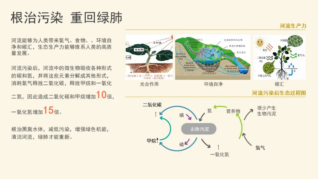 回到之前談到的河流高碳排放問題,經研究河流生態系統破壞後,水中的微生物為了降解污染需要加大力度吸收氧氣,釋放環比高出平常10~15倍的二氧化碳和甲烷,這就是河流變高碳排放源的主因。病理找到,根治的方法就是修復生態系統,降低污染,增加陸地森林和水下森林的數量,綠肺機能才能恢復正常。