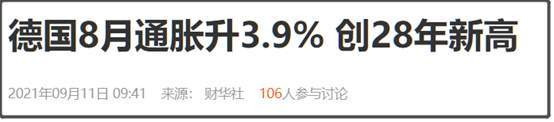 包括最近德國也因為電力價格上漲、海運價格暴漲、食品價格上漲等諸多因素疊加下,也開始出現通脹率飆升。