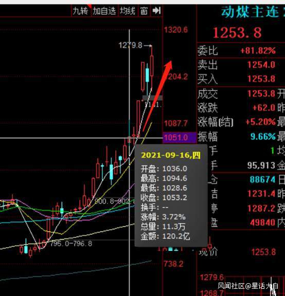 但在9月16日之後,我們煤價就出現一波暴漲,一口氣又漲到了1200元/噸。
