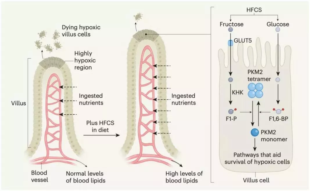 並且,在缺氧的腸道細胞中,果糖1-磷酸抑制丙酮酸激酶M2亞型PKM2以促進細胞存活,產生肥胖的同時還容易導致相關疾病發生,這為市面上果糖的大量使用敲響了警鐘。