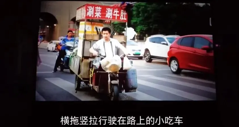拍拉着餐車的髒攤小販: