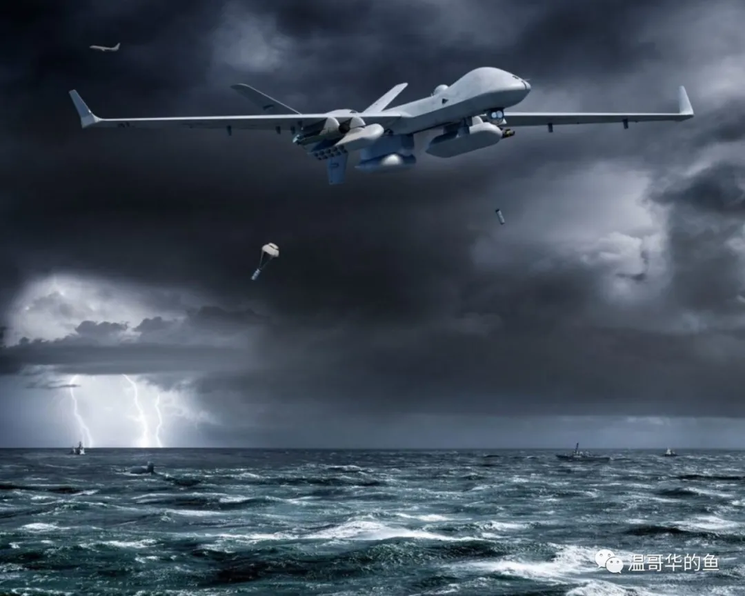 值得一提的是彩虹-5也具備出色的反潛能力,可以搭載下投式聲納浮標及聲磁監測系統,更精準地探測、定位水下目標,召喚有人操作反潛機或者自身攜帶的反潛武器迅速發起火力打擊。美國媒體宣稱尚未服役的“海洋衞士”是世界上第一款可以投放聲納浮標的無人機,他們可能並不瞭解彩虹-5海洋型的研發進度,誰能成為第一款服役的反潛無人機還未可知呢。