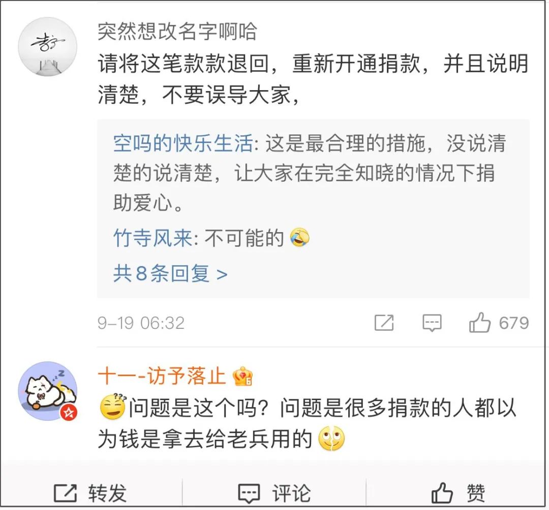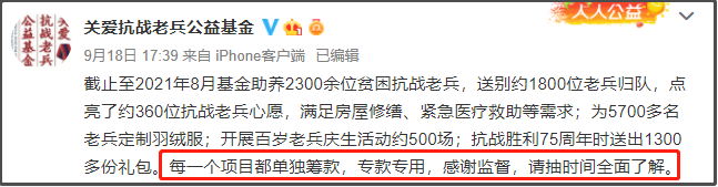 對此,項目的發起方@關愛抗戰老兵公益基金回應,機構已累計救助2300餘位抗戰老兵,為5700位老兵定製羽絨服……每一個項目都單獨籌款,專款專用,請抽時間全面瞭解。