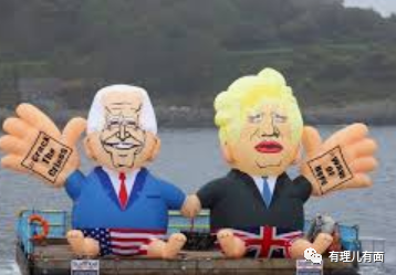 美英兩個親密盟友的頭頭,拜登和約翰遜,湊在一起商討反華大計時,拜登竟然變成了“拉登”!