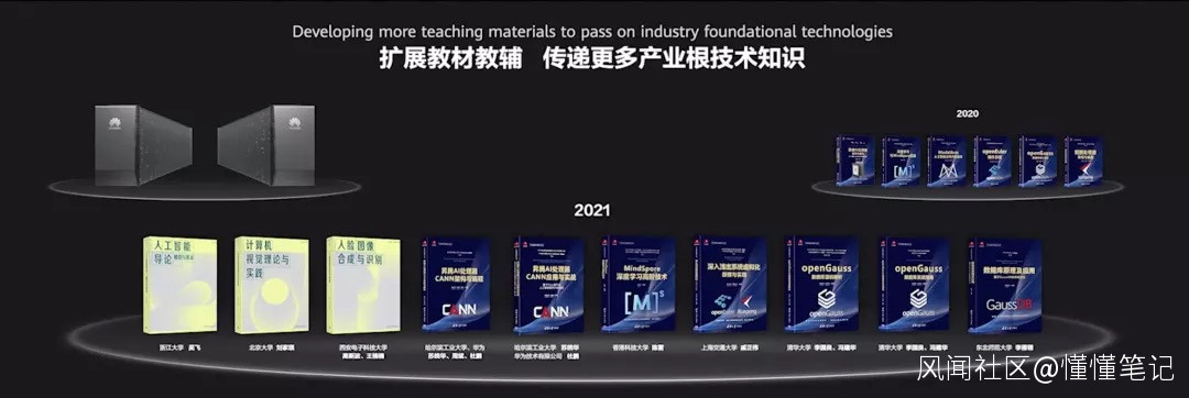 比如,在作為高校教學基礎的教材教輔方面,華為聯合教指委和國內教學名師打造了“計算機教指委系統能力系列教材”、“新一代人工智能系列教材 ”、“華為智能計算技術叢書”三個系列的教材教輔,目前已出版3本教材和13本教輔,將有力地深化產業根技術和高校課程的融合。