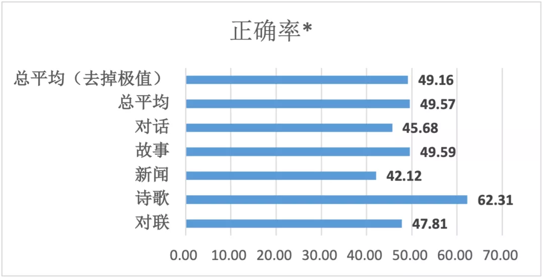 其中,正確率是指能正確將機器生成的文本識別出來的比例。正確率<70%,意味誤判率超過30%。