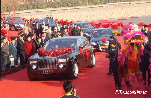 接親的豪車多達200輛,婚宴賓客坐滿500多桌,現場維持秩序的保安近百人,整場婚禮下來花費近5000萬,光給海鑫員工的紅包就花掉了600萬,婚禮現場堪比春晚。