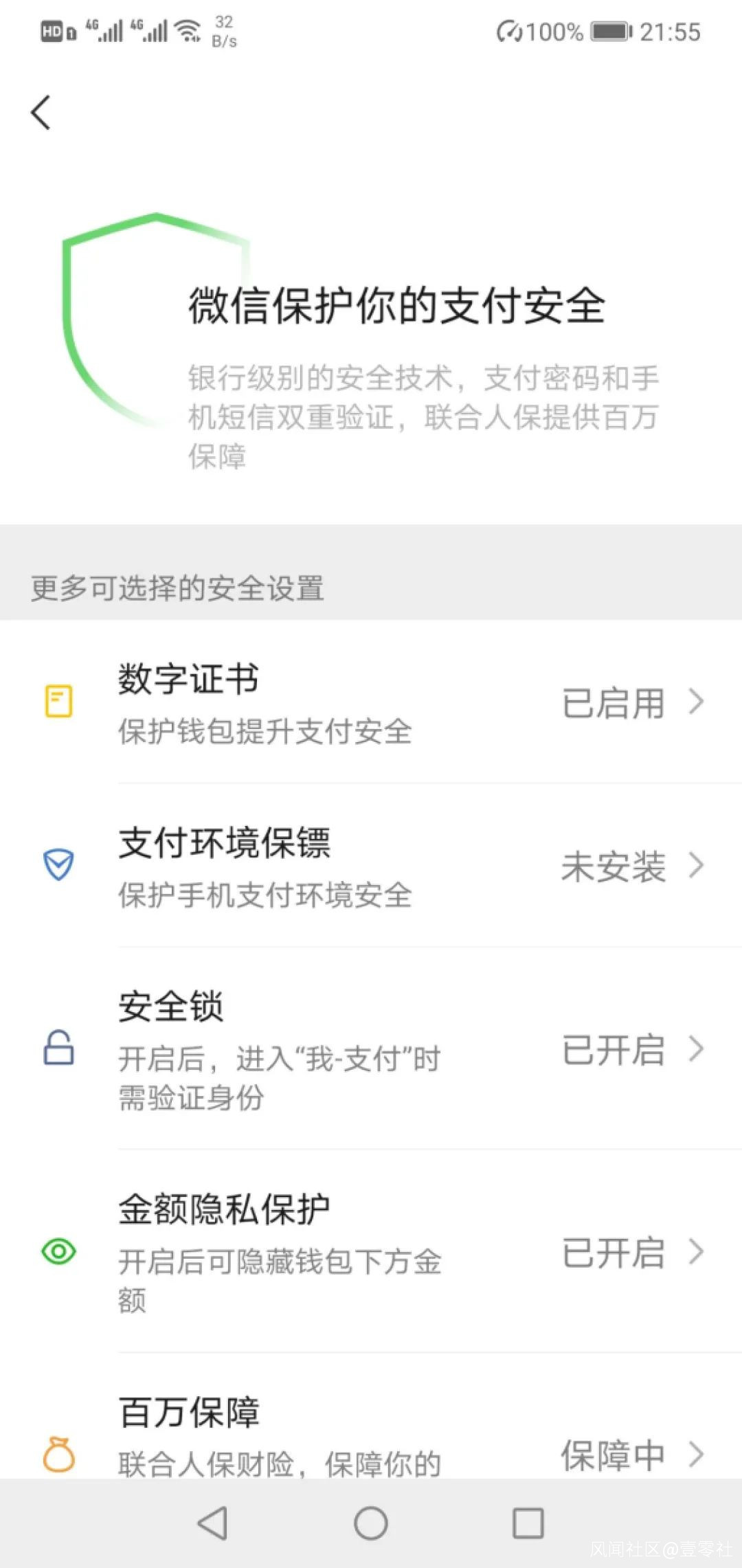 另外也可以對應用APP內的敏感信息再次加密,比如微信錢包可以設置進入密碼,這樣可以防止撿到我們手機的人查看自己的零錢信息。啓動微信後,點擊“我→錢包→安全保障”,將其中的“安全鎖”設置為開啓,可以設置手勢密碼、指紋解鎖等類型。完成這個設置後,以後其他人進入微信錢包時就要輸入密碼,這樣可以更好地保護錢包的安全。