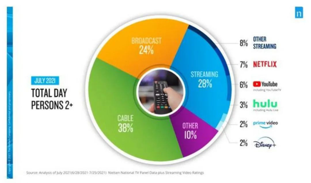 根據Nielsen的數據顯示,截至今年6月,美國流媒體市場份額佔比為28%,其中,網飛佔7%,YouTube佔6%,Hulu佔3%,Amazon Prime Video和迪士尼+均佔2%。“其他流媒體”服務佔整體市場份額的8%。可以説,在這個擁擠的賽道上,網飛岌岌可危。
