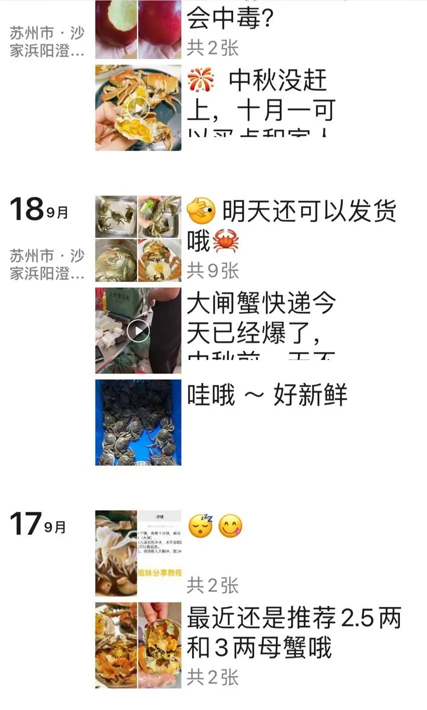 於是,一個普世的方法來了,即使人不在蘇州,在朋友圈幫小鵬這種蟹農代賣也不錯。但是,值得注意的是,你得有精力處理售後問題。