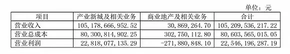 如上圖所示,2019年商業地產新業務營業收入約0.31億元。橫向來看,同期產業新城相關業務營收1052億元,兩者天差地別,不可同日而語。
