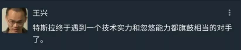王興曾經有過一段非常有意思的論斷,在圈裏引發過非常大的爭議。他評華為做汽車配套:“特斯拉終於遇到了一個技術實力和忽悠能力都旗鼓相當的對手了。”