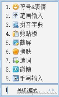 QQ拼音的v模式除上述轉換功能外,還可進入表情符、自造字、剪貼板等模式。