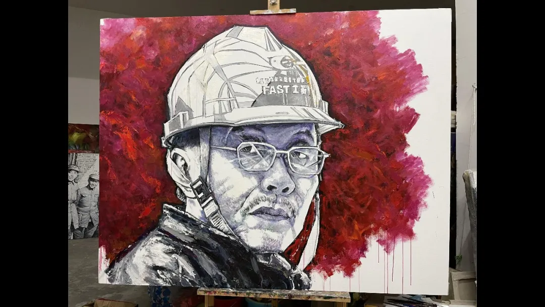 作品完成後,中央電視台國際部的劉欣轉給了華為,我又看到華為人的點贊,這幅作品先後在上海展覽中心、北京798感嘆號藝術中心展出,產生了很大的影響,後來人民日報海外版黨書記李建興希望我繼續畫出一批時代的英雄、民族的楷模,像做天眼的南仁東、袁隆平、屠呦呦、程開甲、鍾南山。