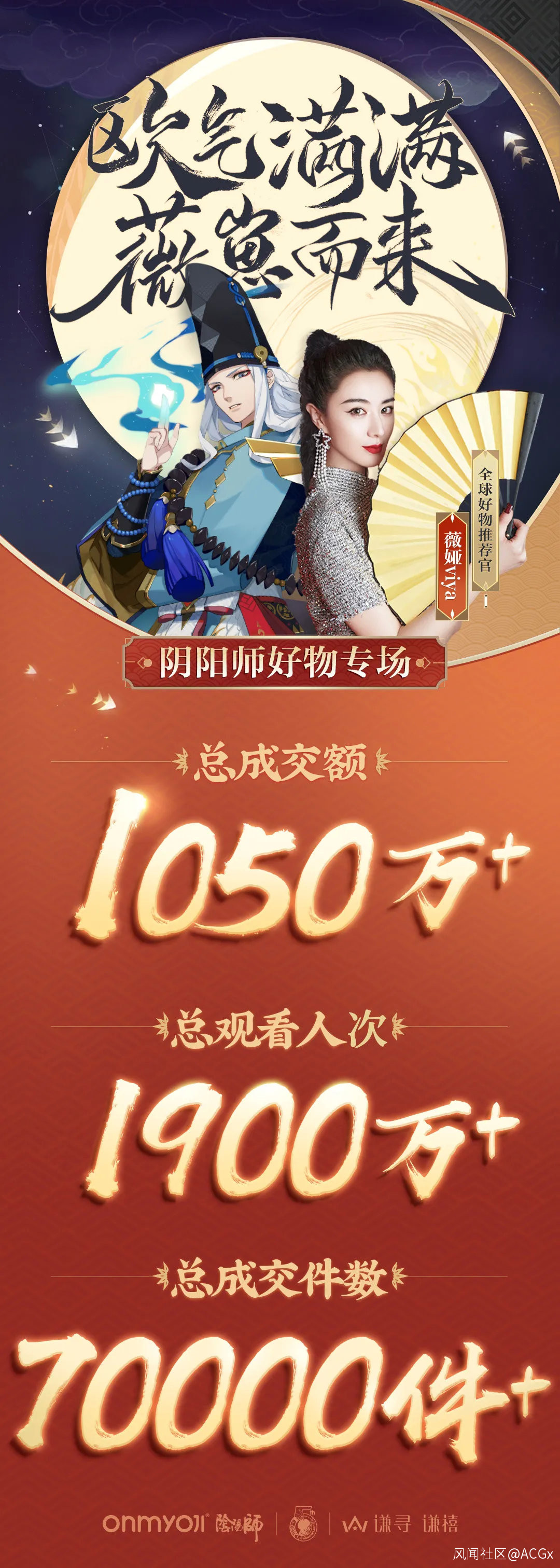 9月26日,網易遊戲攜手謙尋·謙禧打造了薇婭直播間《陰陽師》專場,單場40分鐘內成交額破千萬,直播最高觀看人數超過1900萬。此次《陰陽師》牽手薇婭,獲得了大量年輕網友的關注與支持,有粉絲對《陰陽師》和薇婭的合作表示“雙廚狂喜”,有人看到商品列表表示“還挺實用”,還有人留言“錢包準備好了”,並期待能夠看到更多《陰陽師》相關商品……