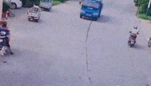 江西會昌,兩男孩在馬路中間玩耍,雙雙鑽進路上紙箱殼內,慘遭小貨車碾壓。