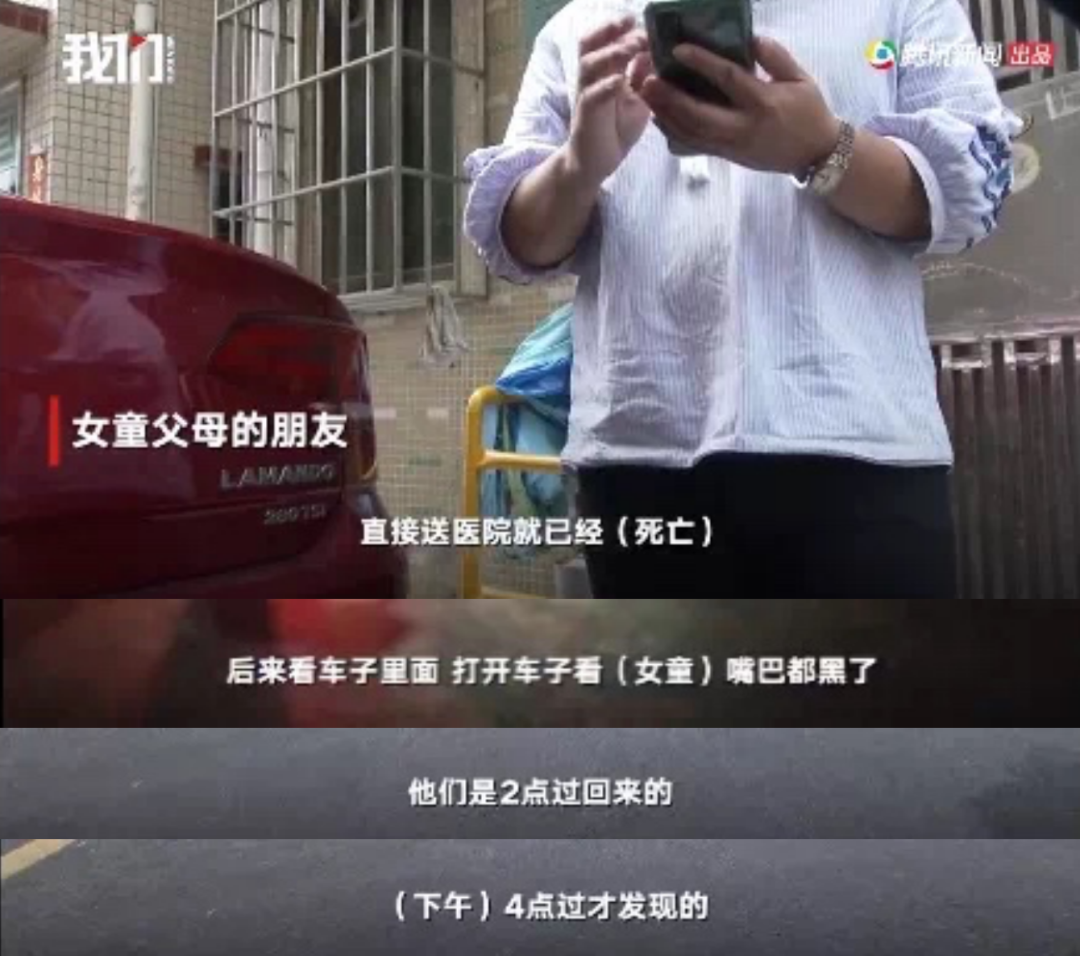 中秋節中午,夫妻倆帶着女孩去朋友家吃飯。兩點多回來,女孩在車上睡着了,夫妻倆直接鎖上車,打牌去了,把女孩忘得一乾二淨。