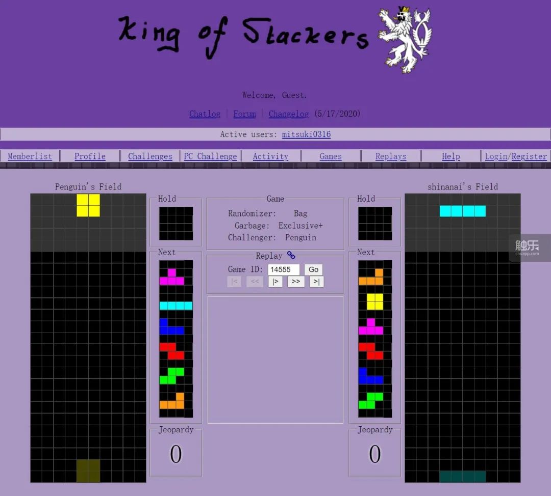 還有mifu。“俄羅斯方塊”講究速度,他玩的《King of Stackers》正好相反,玩家把它稱作“回合制俄羅斯方塊”。一般來説,“俄羅斯方塊”遵循“Bag-7”規則,即7個方塊為一組,互不重複,打包後成套出現。在《King of Stackers》中,雙方的操作不會同步進行,而是以7個方塊為一個回合,玩家放下一組方塊,然後等待對手放另一組。在對手結束操作前不能行動,所以叫“回合制”。