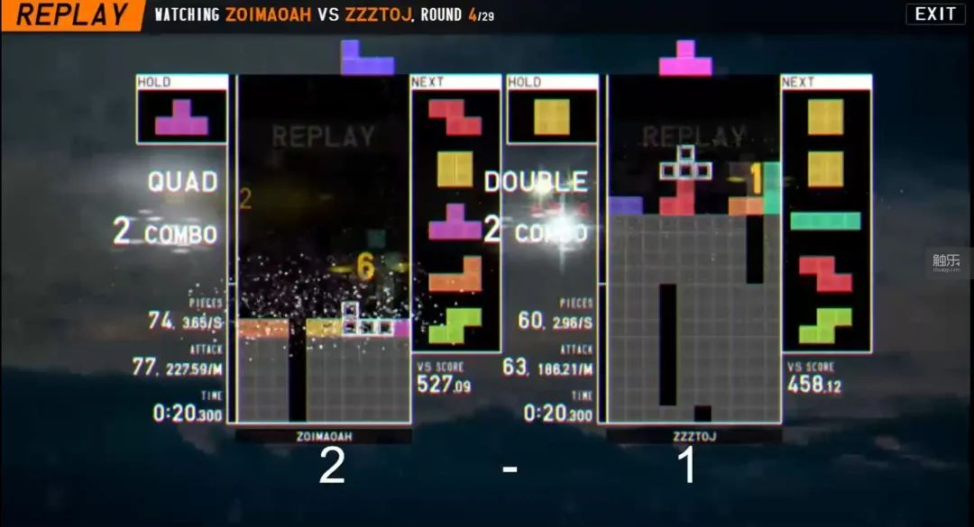 相比競速,對戰才是主流。玩家間的對抗富有樂趣,如果説競速是枯燥的修行,對戰就是友人切磋。雖然都是“俄羅斯方塊”,但隔行如隔山,前者只需要追求純粹的速度,後者講究直擊痛點,在對手最難受的時候發動猛攻。攻擊系統偏好連擊、旋轉、一次性消除,因此對戰的思路和競速有很大不同。玩的模式不同,練習方向不是南轅北轍,也大相徑庭。
