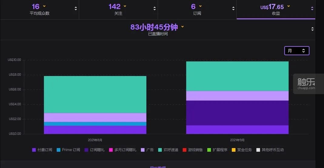 diao的直播收入統計