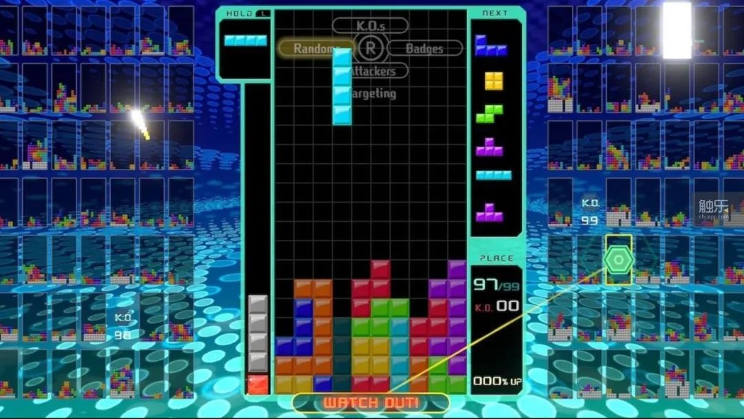 網戰系統並非“T99”首創,類似的對戰模式一直都是“俄羅斯方塊”的主要玩法。當然,和99名玩家混戰的場景不同,更多玩家熟悉的還是1v1或少數幾個玩家對抗,但規則大致一樣。