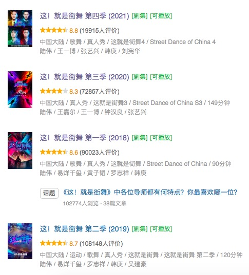 街舞的情況有所不同,2020年12月霹靂舞被納入2024年巴黎奧運會正式比賽項目,是以《這就是街舞》也被納入了體育綜藝的範疇。但在此之前,這檔節目同樣經過了三年的積累和持續性輸出,才有瞭如今的影響力。硬核口碑和街舞本身的潮流屬性,也是其能夠走向大眾市場的關鍵。