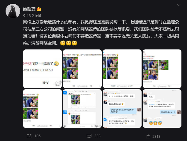 傳聞愈演愈烈,李子柒的助理此時也不得不站出來闢謠,她發文稱“七姐只是正在整理公司和第三方公司的問題,請大家不要牽扯無辜藝人”。