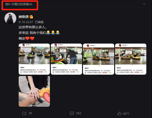 這才有了開頭李子柒助理的闢謠聲明,而李子柒本人直到9月20日才點讚了一條“團建玩碰碰車”的微博,終於再次在網絡上留下了自己存在的痕跡。
