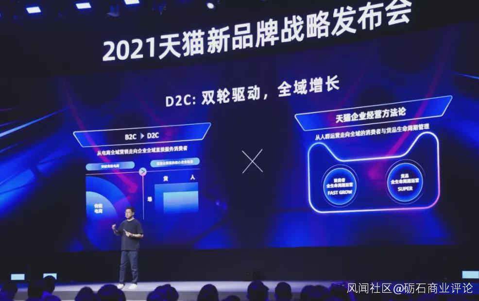 電商平台也有大動作。在距離2021年“雙十一”不到一個月的9月23日,天貓召開了一個“小型”卻非常重要的戰略級發佈會,瞄準“下一個階段的戰略”“下一代方法論”,官宣從B2C平台向D2C服務平台邁進,因為“企業一定會走向D2C,而且是通過全域面對消費者的時代。所以,天貓的未來,也會從B2C時代走向D2C時代,天貓存在的意義,就是幫助大家在充滿不確定性、數字化、全域經營的環境裏有更好的發展。”並且,天貓還計劃在5年內投入百億元,重點孵化2000個潛力新品牌。
