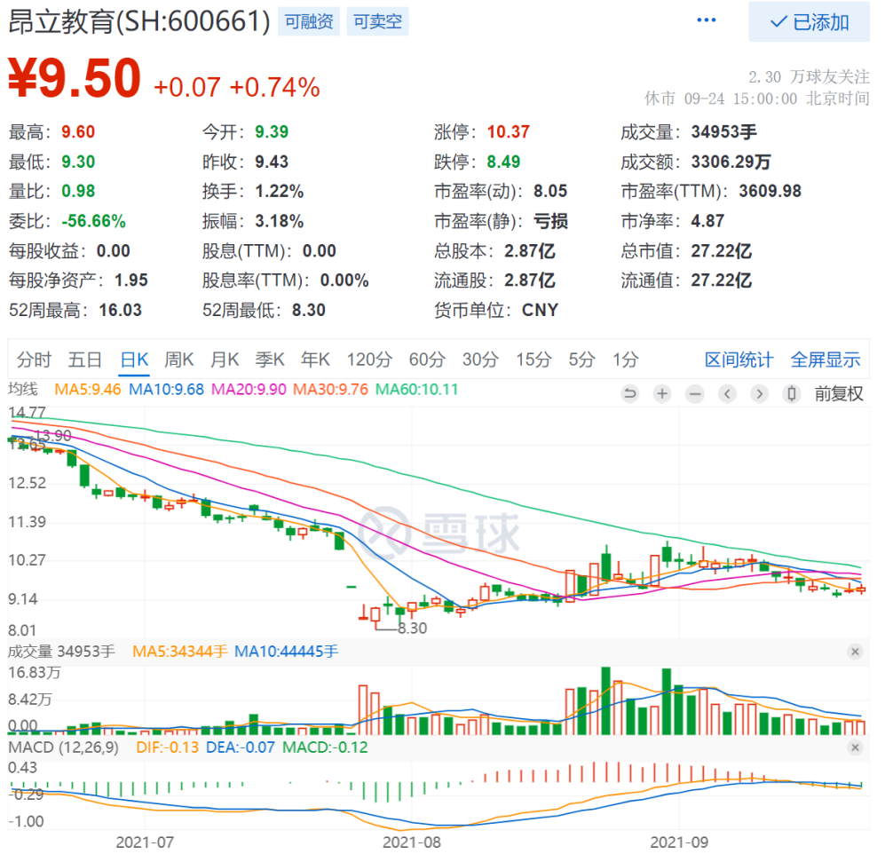 從股價表現來看,或許得益於昂立教育的及時回應,其股價並未因此出現大幅波動。截至9月24日收盤,昂立股價報9.5元/股,微漲0.74%。