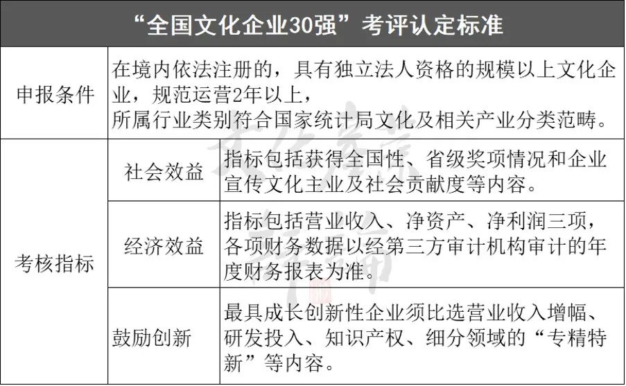 13年13屆,全國共有80家文化企業入選“30強”、89家文化企業進入“30強提名”名單。**這些文化企業不僅代表着中國文化企業第一方陣的最強實力,更承載着文化強國的歷史使命。**隨着中宣部近日在深圳召開文化高質量發展座談會精神的貫徹落實,以“30強”企業為代表的骨幹文化企業將一如既往地堅持社會效益與經濟效益有機統一的評判標準,在新徵程上推動文化產業高質量發展,為人民羣眾奉獻更多健康營養的精神食糧。
