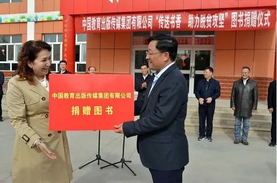 △圖為中國教育出版傳媒集團向貧困地區捐贈圖書