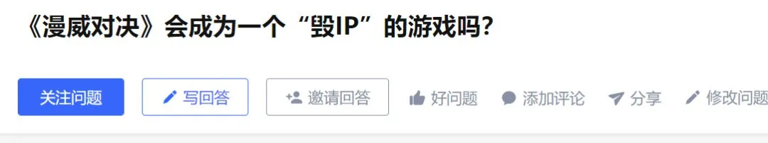 IP改編遊戲在國內沒什麼好口碑,大部分玩家的記憶中都有不少粗製濫造的換皮IP遊戲,往往除了名字外,和原IP就沒什麼一致。所以《漫威對決》一宣佈要上線國服,知乎就有了“《漫威對決》會成為一個“毀IP”遊戲嗎?”這樣的問題。