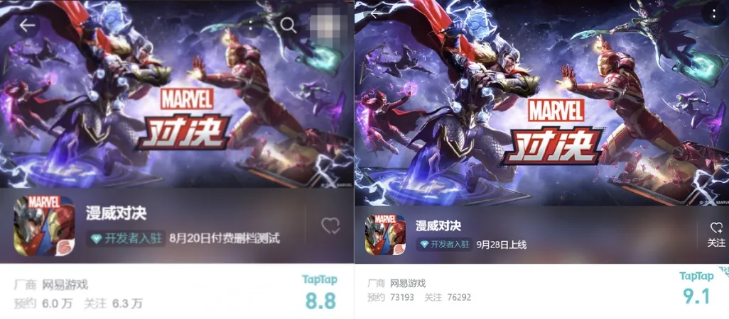 但是——既然我前面鋪墊了這麼多,想必你也猜到這裏會有一個但是——《漫威對決》在二測開放付費後評分反而漲了0.3,從8.8變成了9.1,而在今天上線後,居然還保持在9分,這是非常少見的情況。