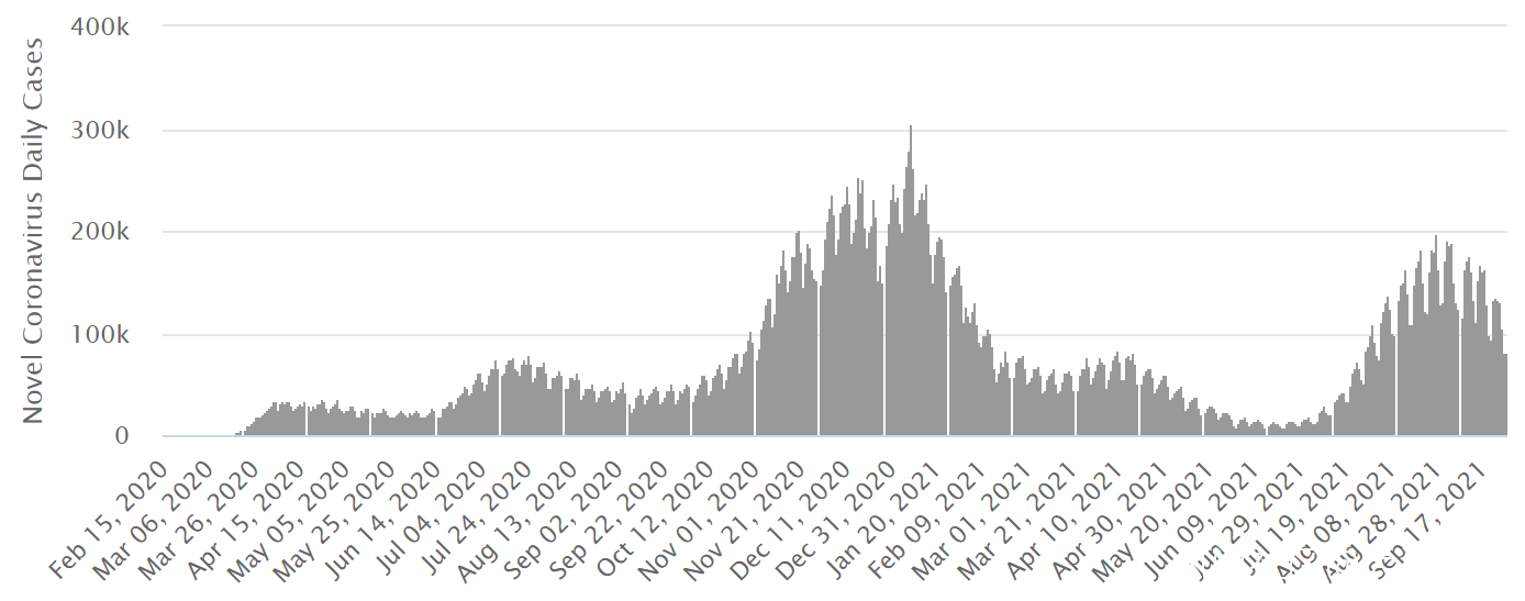 9月27日,全球新增新冠確診378,307例;累計確診2.3309億例;新增病亡5,497例;累計病亡476.96萬例。