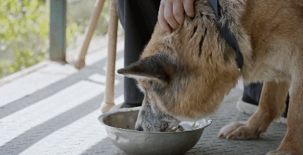 回到九龍山警犬養老院,民警老白立即給它們補充營養。