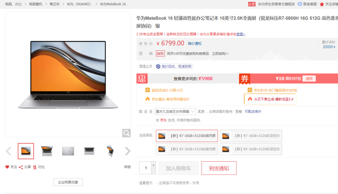 另外,京東商城華為官方旗艦店也顯示,早已發佈的其他MateBook系列筆記本,如MateBook 13、MateBook X 、 MateBook 14 、MateBook X Pro 2021款(部分)、MateBook 16、MateBook D 14等,均處於全面無貨狀態。