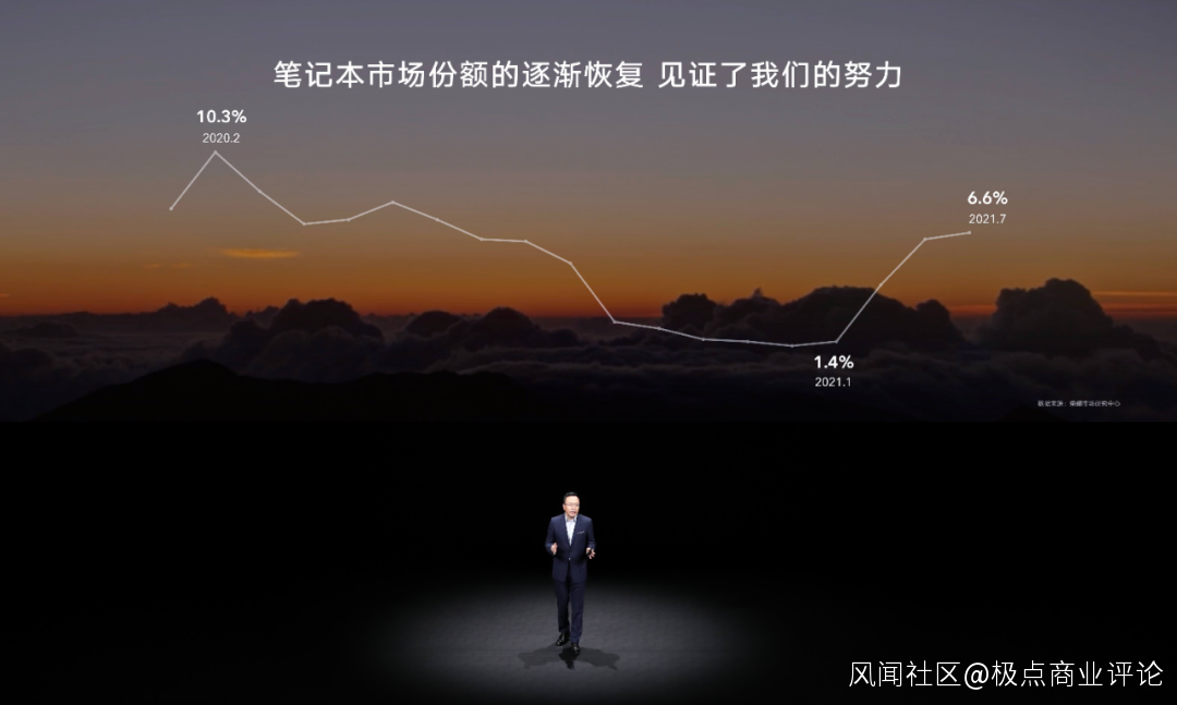 另外,在與華為體系拆分後,榮耀筆記本電腦增速較快。榮耀CEO趙明近日透露,截至2021年7月,榮耀筆記本中國市場份額提升至6.6%,成為今年行業增速最快的筆記本品牌。