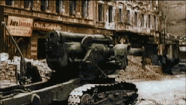 在柏林戰役中,蘇軍炮手被命令摧毀林登大道和科門丹騰大街拐角處的一座房子,這座房子是德軍的堅固支撐點。