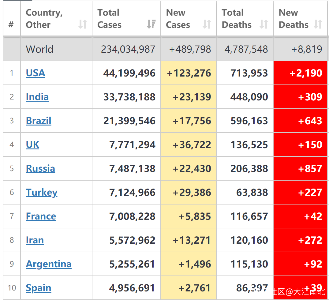 9月29日,全球新增新冠確診489,798例;累計確診2.3403億例;新增病亡8,819例;累計病亡478.75萬例。