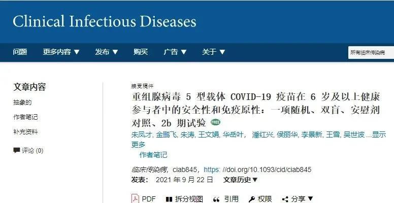 9月22日,傳染病領域權威期刊《Clinical Infectious Diseases》發佈重磅論文——首個兒童青少年接種克威莎的安全性和免疫原性數據。