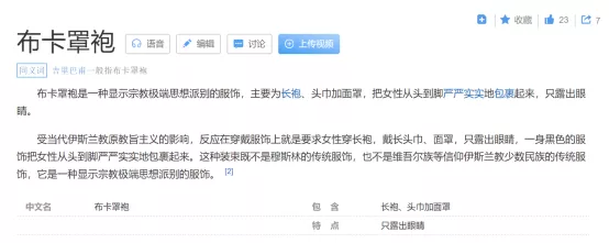 順便説一句,我們一般理解的吉里巴甫是指那種只露出眼睛的黑罩袍。這是一種基於伊斯蘭原教旨主義的極端服飾,既不是回族、維吾爾族等中國少數民族的傳統服飾,至少在我國這就是不折不扣的宗教極端服飾。而歐洲多國,對這種服飾進行了限制,禁止公眾在公共場合穿着罩袍。如果不信,可參見以下兩篇文章,也可在網上搜索相關資訊,自行判斷: