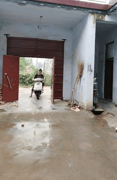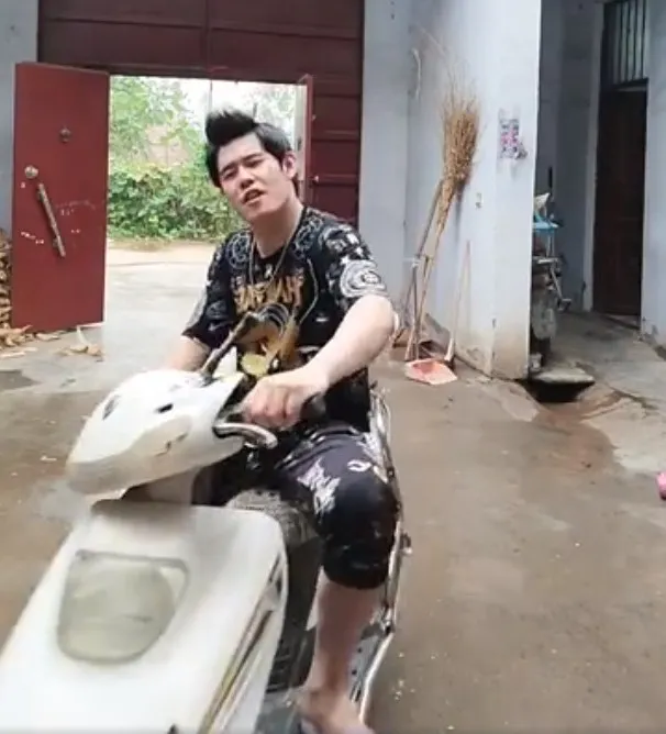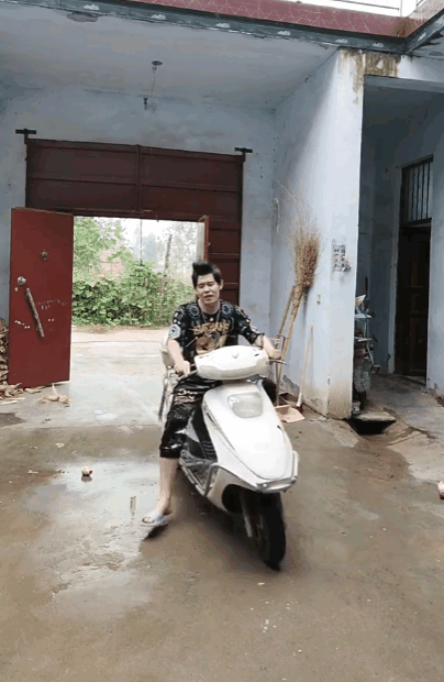 視頻中,有位腳蹬拖鞋的飄逸男子騎着電瓶車,大搖大擺地駛進農家小院,背景音樂配的還是周杰倫的《一路向北》。