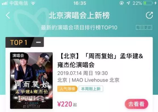 當時,他們的這場演唱會一度登上了北京演唱會TOP10的第一名。